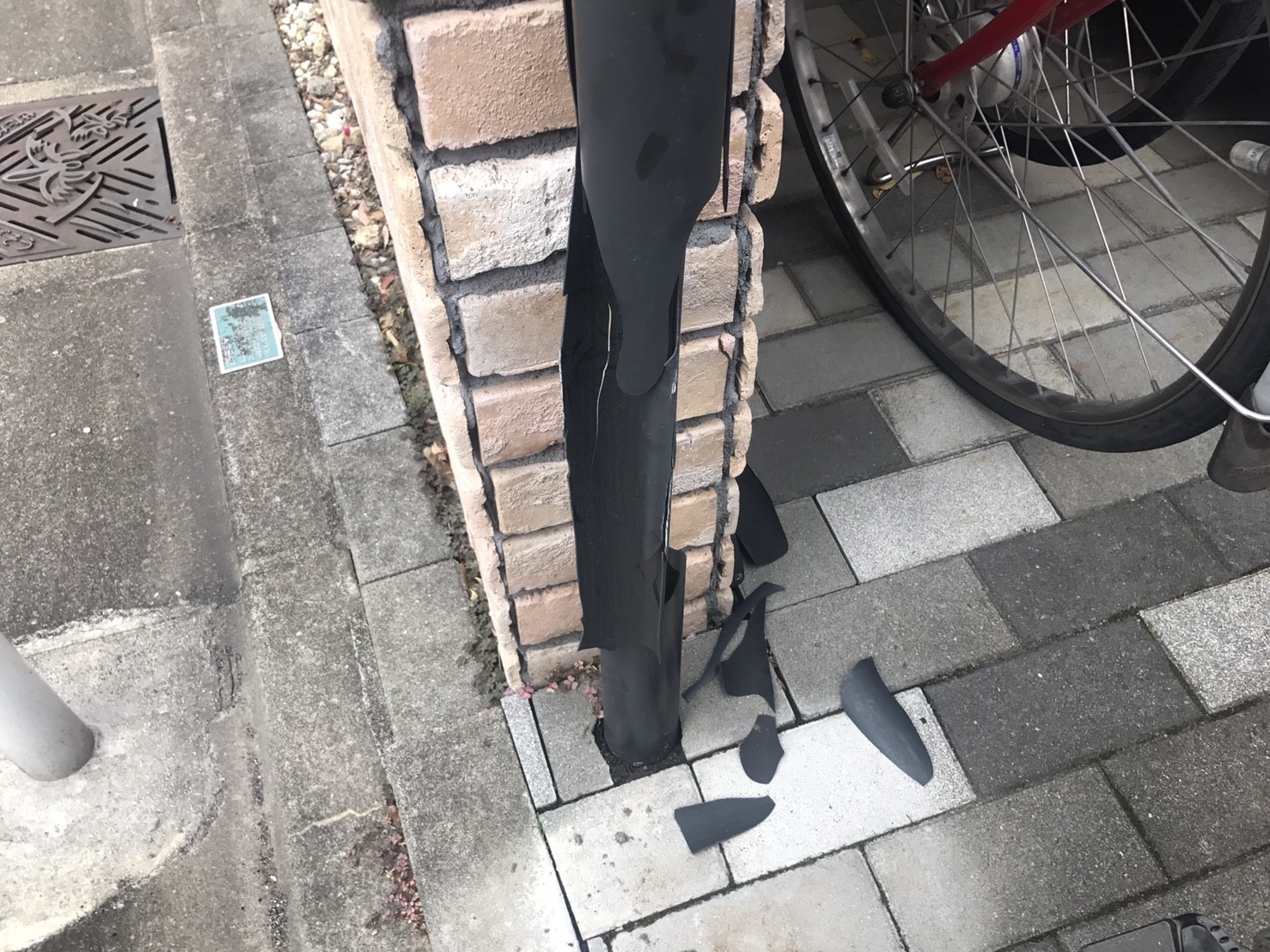 雨樋工事の理由:車で竪樋をぶつけてしまい、破損した。