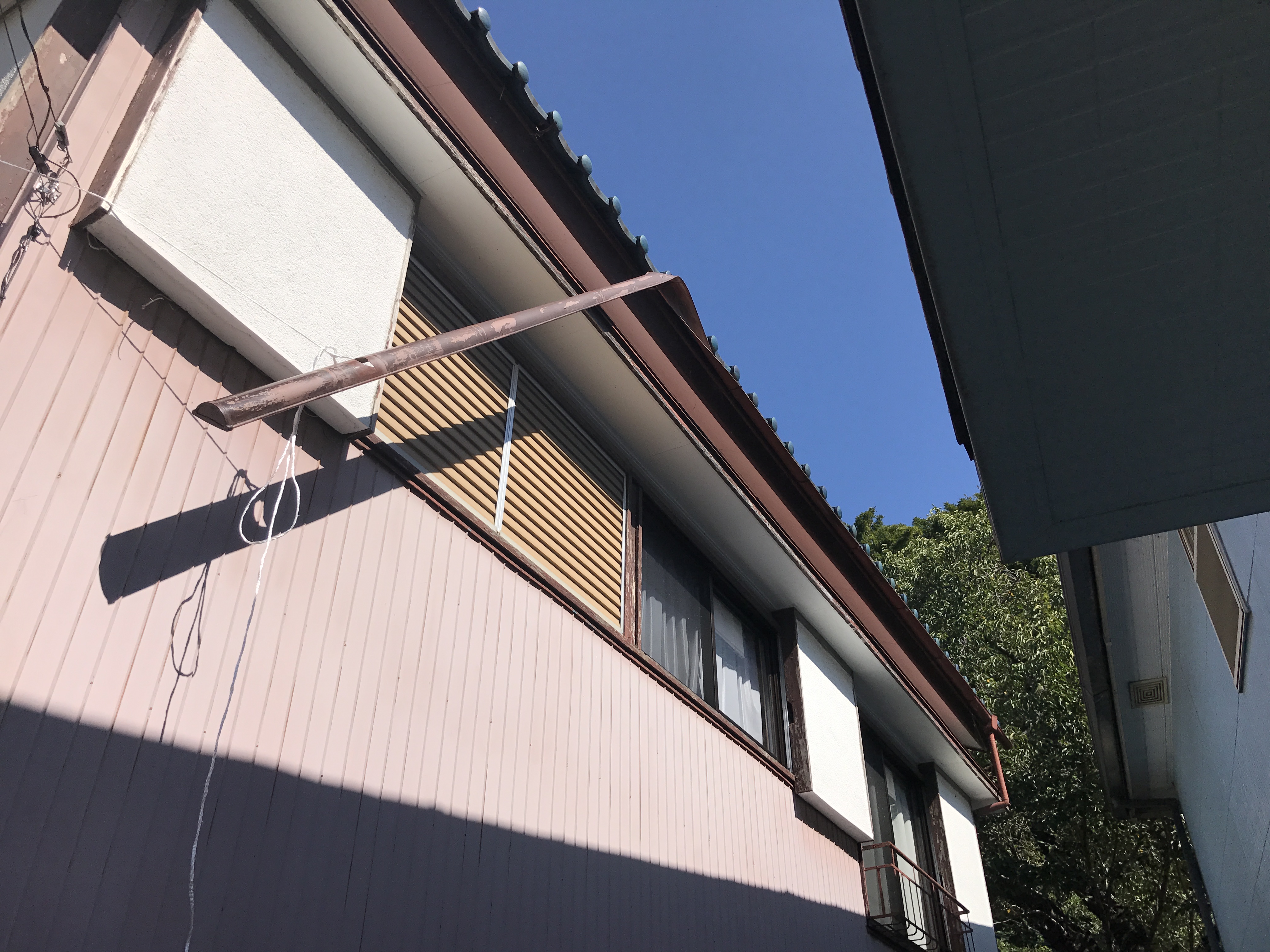 雨樋工事の理由:台風の影響で軒樋が取れてしまった。
