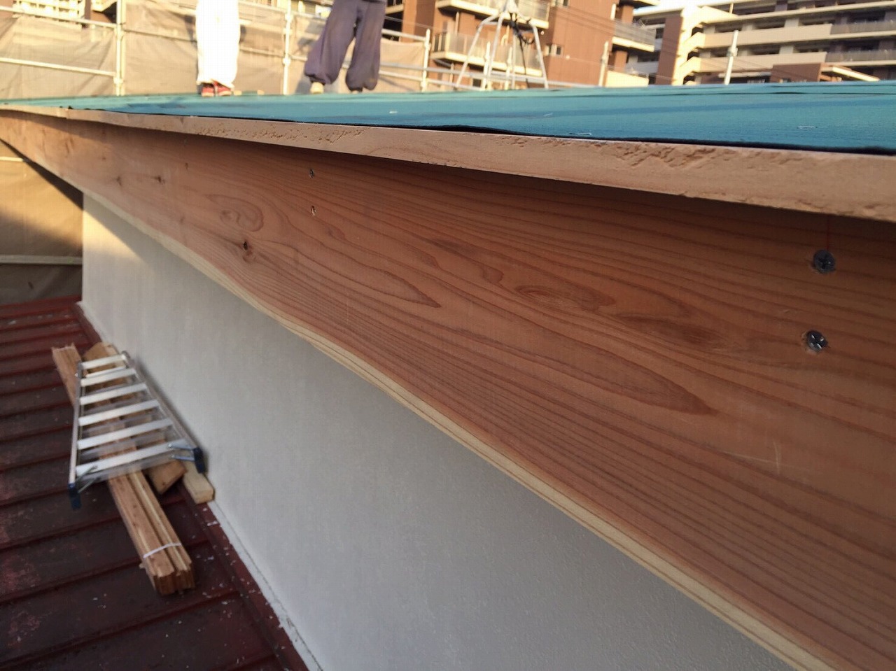 ⑥下地を新しくしっかり入替をおこないました。破風はこのまま見えてしまうので塗装を行います。