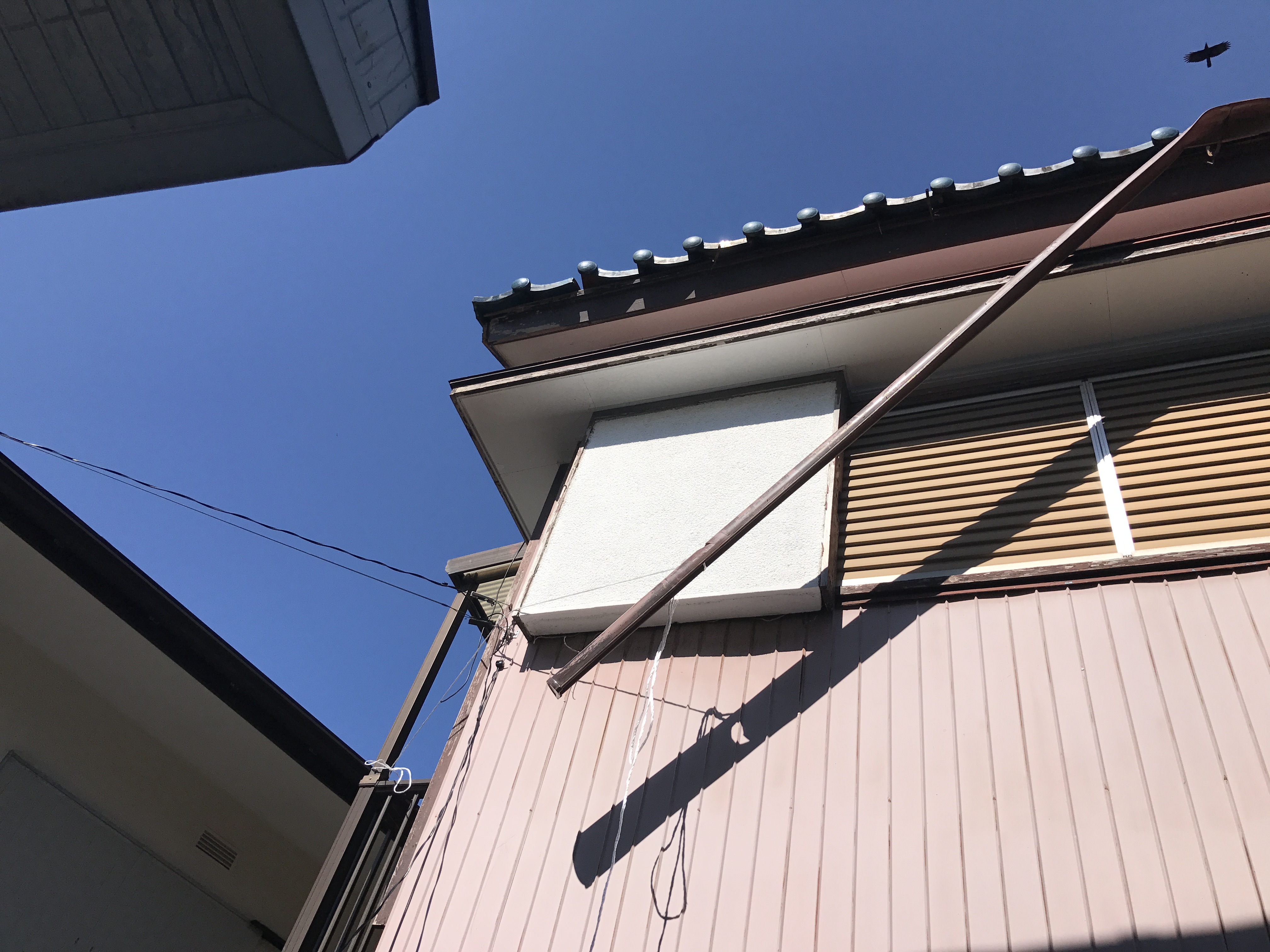 雨樋工事の理由:台風で竪樋が飛んでしまった。