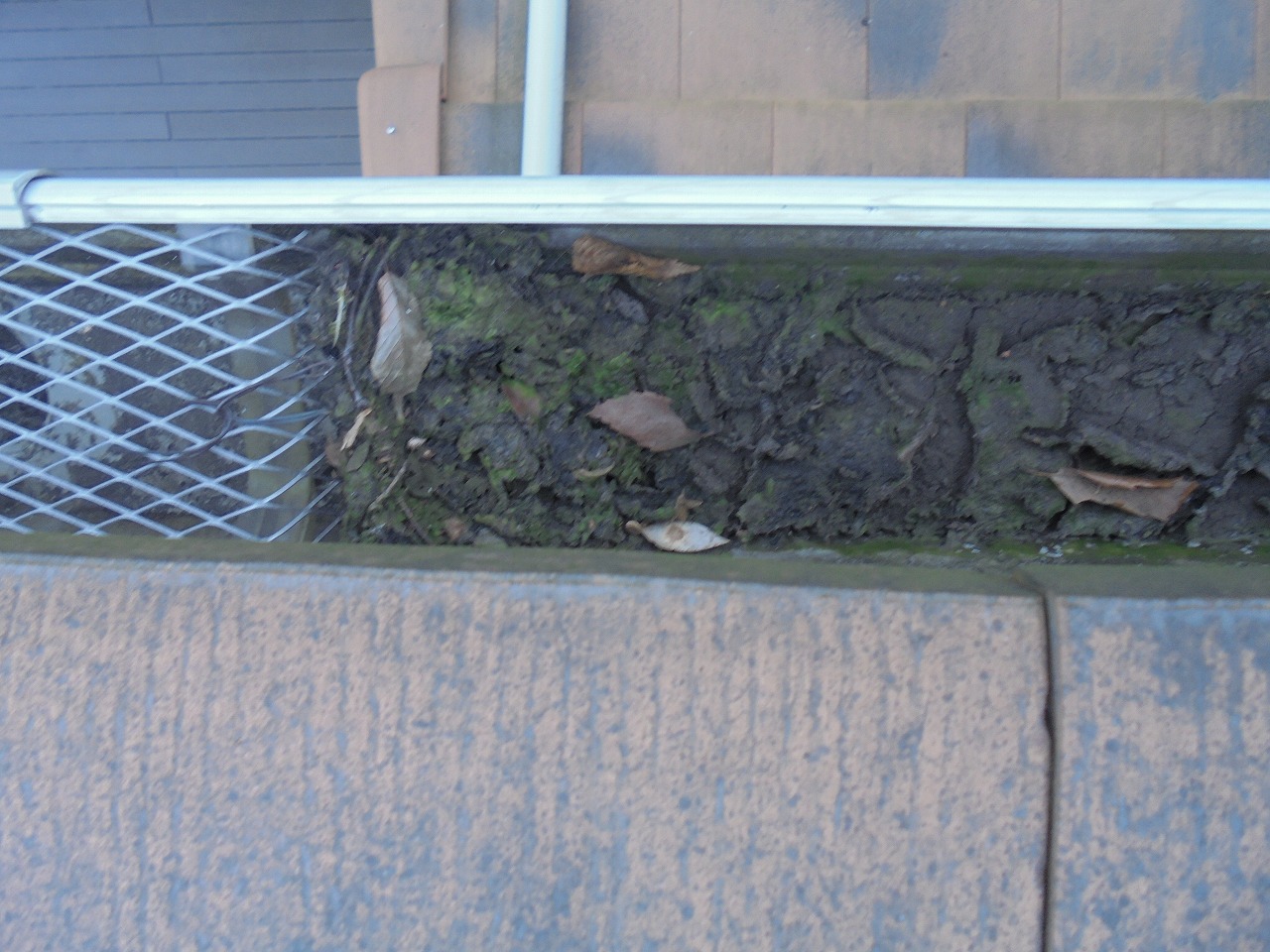 こちらの家は、近くに木がいっぱいあり、砂のグランドもあるため、早いときは1年程で雨どいが詰まっていたそうです。