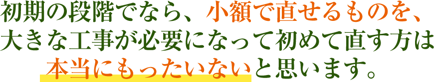 少しでも早く修繕する事で他箇所への浸食を防ぎ大きな住宅工事に発展する事を防ぐ事が出来ます。