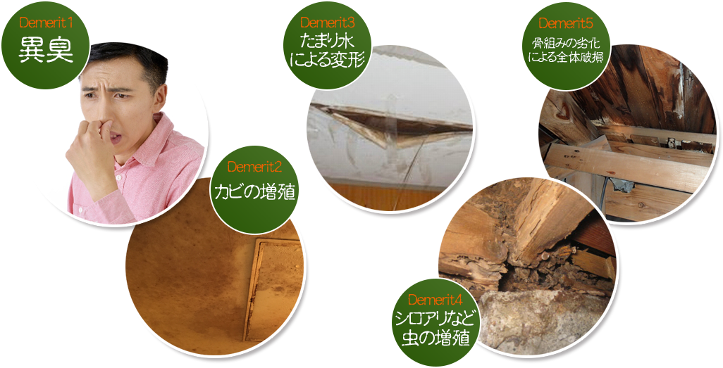 まず一番多いものは、外装、屋根の劣化から雨漏りにつながることが非常に多く見受けられます。