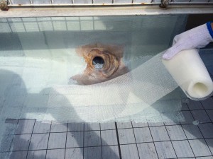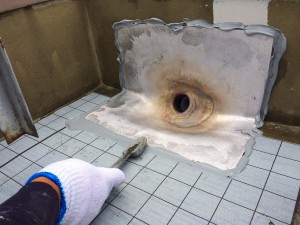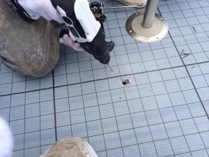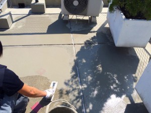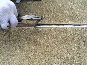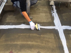 目地を撤去後、カチオンをノロ引きし、下地調整をおこなっていきます。 ※下地は、とても重要です。