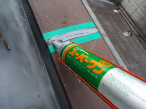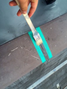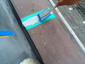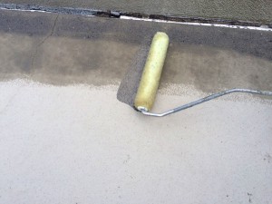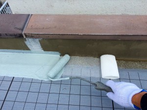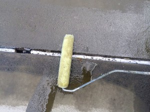 カチオンノロ引き後にプライマー塗布・目地シーリング・クラック補修をおこなっていきます。