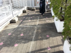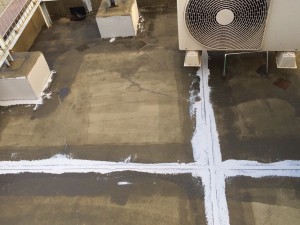 建てられてから無防水工事をおこなっていないので、無数のクラックがあるのが見てわかります。