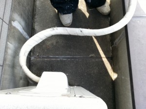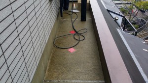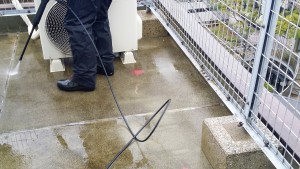 早速施工をさせていただき工事スタート! 材料のノリをよくするため、まずは高圧洗浄でキレイに洗浄。