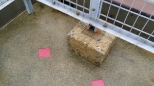他の箇所もクラック補修の跡があるのですが、劣化でクラックが広がっているのが見えます。