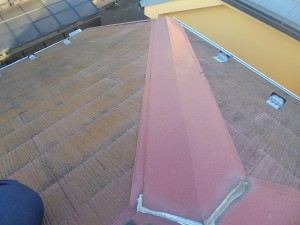 そのせいで棟板金が浮いてしまって下地貫板が見えてしまっています。