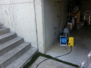 まずはコンクリート部分高圧洗浄
