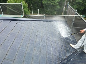 高圧バイオ洗浄、高圧水洗い洗浄、屋根トルネード洗浄 と洗浄していきます
