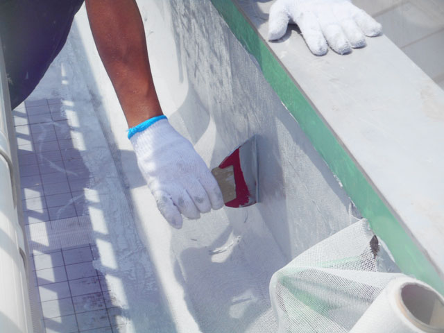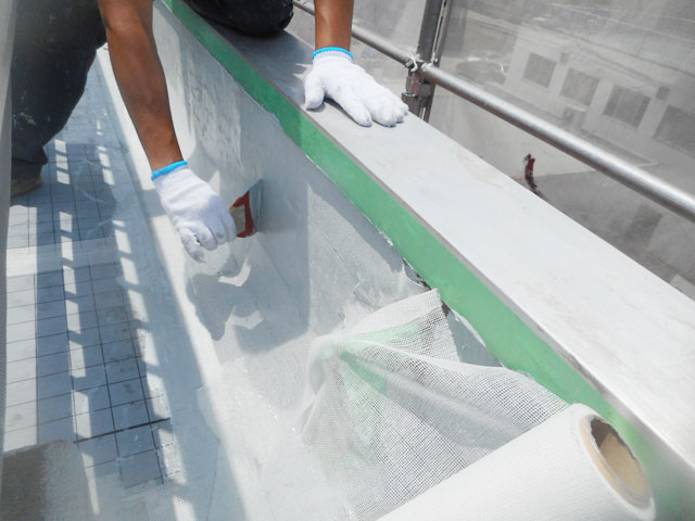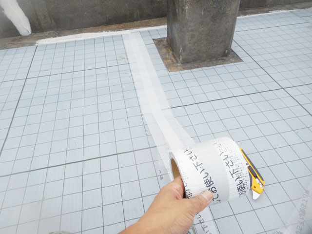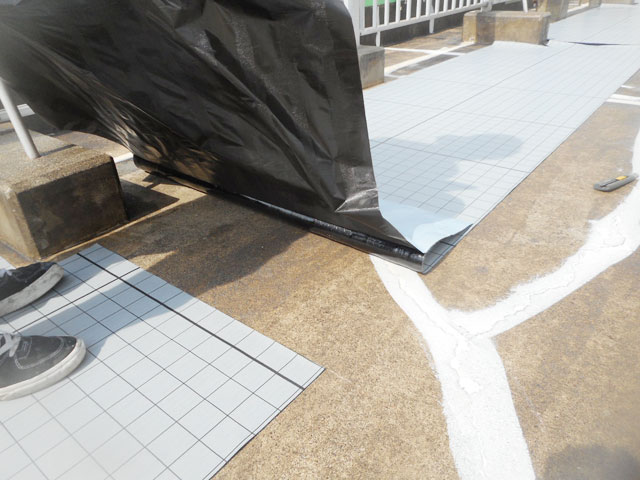 | 9 | 超微粒子左官塗布 | 10 | プライマ−塗布 | 11 | 自着シ−ト張り | 12 | 自着シ−トジョイントテ−プ張り |