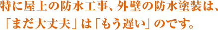 大事なことは、常日頃のチェックと、ちょっとした雨漏れなどのサインを見逃さないことです。