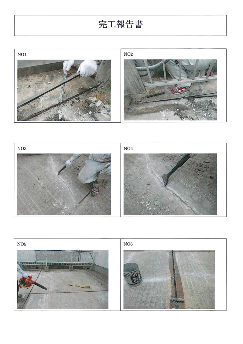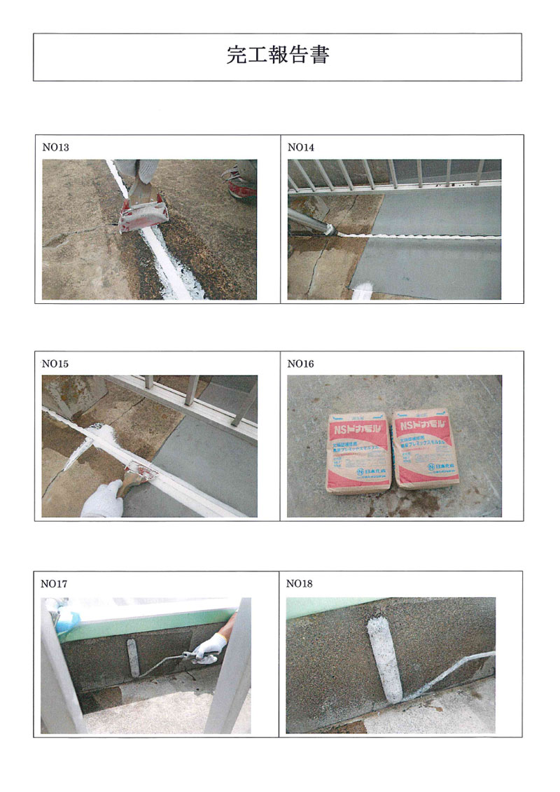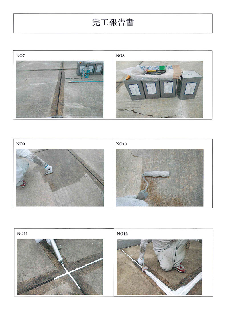 | 5 | 目地プライマ−塗布 | 6 | 目地シ−リング | 7 | 目地シ−リング(仕上げ) | 8 | Sクリートアップ塗布 |