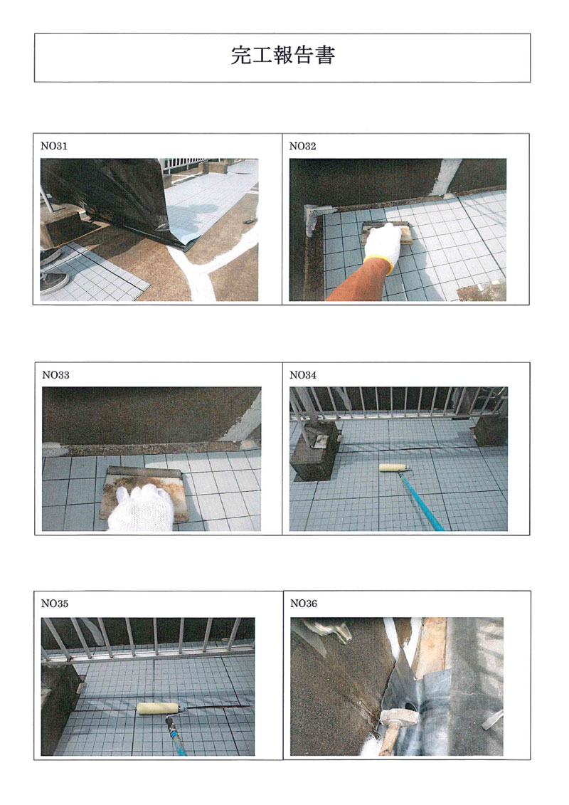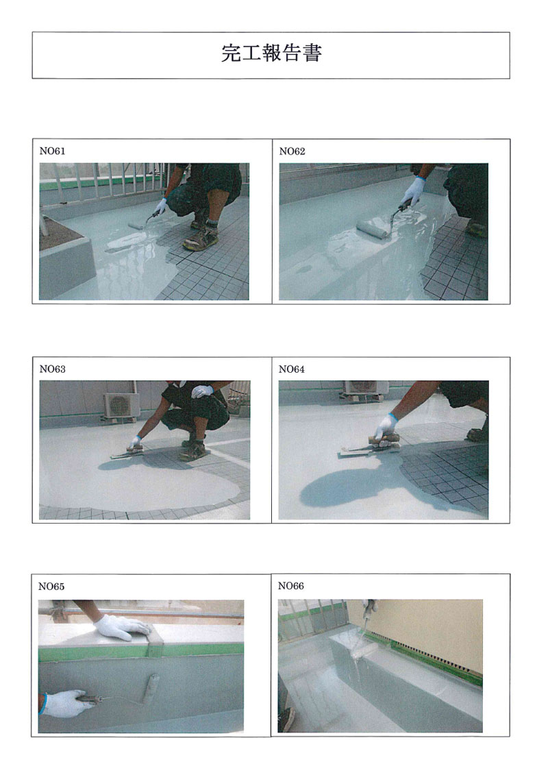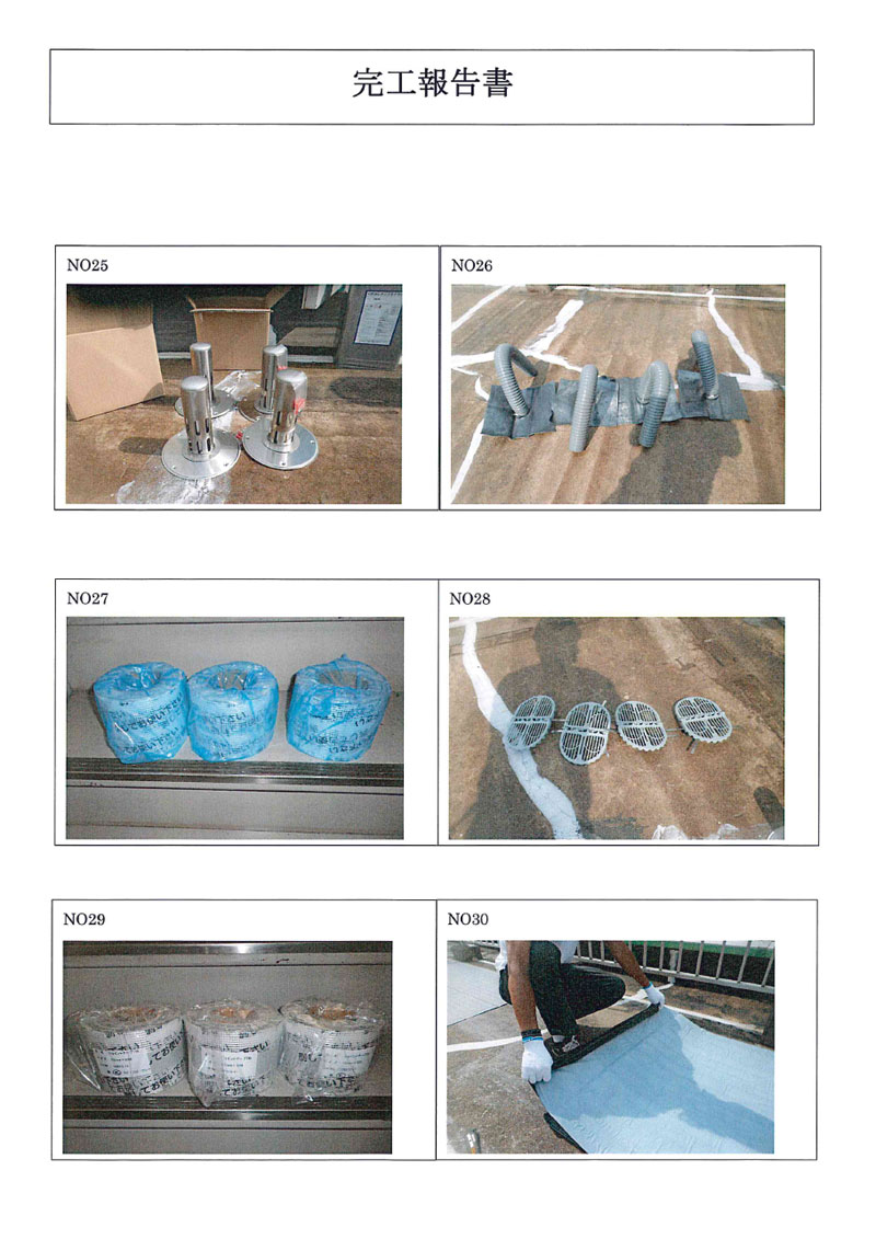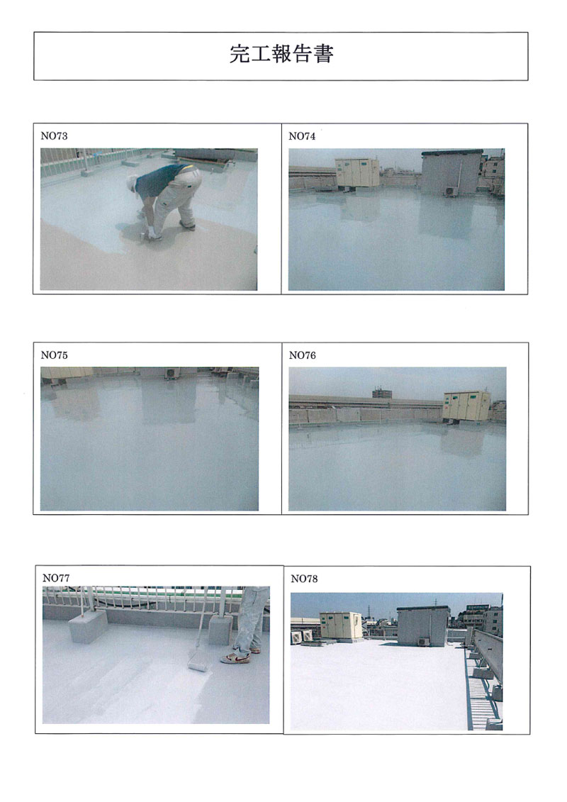 | 25 | ウレタン防水2層目 2 | 26 | ウレタン防水2層目完成 1 | 27 | ウレタン防水2層目完成 2 | 28 | ウレタン防水2層目完成 3 |
