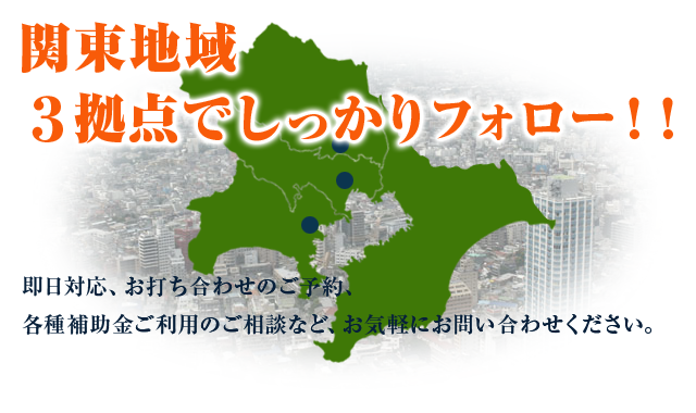 | 対応地域 | ・東京都 昭島市/あきる野市/足立区/荒川区/板橋区/稲城市/江戸川区/青梅市/江戸川区/青梅市/大田区/葛飾区/北区/清瀬市/国立市/江東区/小金井市/国分寺市/小平市/狛江市/品川区/渋谷区/新宿区/杉並区/墨田区/世田谷区/台東区/立川市/多摩市/中央区/調布市/千代田区/豊島区/中野区/奥多摩/西東京市/練馬区/八王子市/羽村市/東久留米市/東村山市/東大和市/日野市/府中市/福生市/文京区/町田市/三鷹市/港区/武蔵村山市/武蔵野市/目黒区 ・神奈川県 愛甲郡愛川町 愛甲郡清川村 足柄上郡大井町 足柄上郡開成町 足柄上郡中井町 足柄上郡松田町 足柄上郡山北町 足柄下郡箱根町 足柄下郡真鶴町 足柄下郡湯河原町 厚木市 綾瀬市 伊勢原市 海老名市 小田原市 鎌倉市 川崎市 川崎市麻生区 川崎市川崎区 川崎市幸区 川崎市高津区 川崎市多摩区 川崎市中原区 川崎市宮前区 高座郡寒川町 相模原市 相模原市中央区 相模原市緑区 相模原市南区 座間市 逗子市 茅ヶ崎市 中郡大磯町 中郡二宮町 秦野市 平塚市 藤沢市 三浦郡葉山町 三浦市 南足柄氏 大和市 横須賀市 横浜市 青葉区 旭区 泉区 磯子区 神奈川区 神奈川区 金沢区 港南区 港北区 栄区 瀬谷区 都筑区 鶴見区 戸塚区 中区 西区 保土ヶ谷区 緑区 南区 ・埼玉県 上尾市 朝霞市 入間郡越生町 三芳町 毛呂山町 入間市 大里郡寄居町 桶川市 春日部市 加須市 川口市 川越市 北足立郡伊奈町 北葛飾郡杉戸町 松伏町 北本市 行田市 久喜市 熊谷市 鴻巣市 越谷市 児玉郡上川町 上里町 美里町 幸手市 さいたま市岩槻区 浦和区 大宮区 北区 桜区 中央区 西区 緑区 南区 見沼区 坂戸市 狭山市 志木市 白岡市 草加市 秩父郡小鹿野町 長瀞町 秩父村 皆野町 横瀬町 秩父市 鶴ヶ島市 所沢市 戸田市 新座市 蓮田市 羽生市 飯能市 東松山市 比企郡小川町 川島町 ときがわ町 滑川町 鳩山町 吉見町 嵐山町 日高市 深谷市 富士見市 ふじみ野市 本庄市 三郷市 南埼玉郡宮代町 八潮市 吉川市 和光市 蕨市 ・千葉県 旭市 我孫子市 安房郡鋸南町 夷隅郡大多喜町 夷隅郡御宿町 いすみ市 市川市 市原市 印西市 印旛郡酒々井町 浦和市 大網白里市 柏市 勝浦市 香取郡神崎町 香取郡多古町 香取郡東庄町 香取市 鎌ケ谷市 鴨川市 木更津市 君津市 佐倉市 山武郡九十九里町 山武郡芝山町 山武郡横芝光町 山武市 白井市 匝瑳市 袖ケ浦市 館山市 千葉市 稲毛区 中央区 花見川区 緑区 美浜区 若葉区 銚子市 長生郡長柄町 白子町 長生村 長南町 長柄町 睦沢町 東金市 富里市 流山市 習志野市 成田市 野田市 富津市 船橋市 松戸市 南房総市 茂原市 八街市 八千代市 四街道市 |