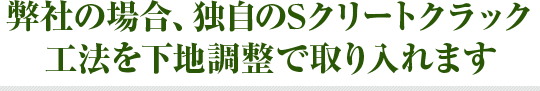 Sクリートクラック工法は、下地材(Sクリートアップ)を塗ることで、下地にアルカリ成分が吸収されると同時に、ヒビ割れ部分に入り込んだ材料は、2週間〜3週間でカルシウムと結合して、中でひび割れをふさいでしまいます!!