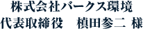 レイティスホームさんは、弊社の優良販売パートナー様として御付き合いをさせていただいておりますが、非常に丁寧な仕事ぶりと、施工したお客様からの評判が大変よく、私どもパークス環境も大変助かっております。