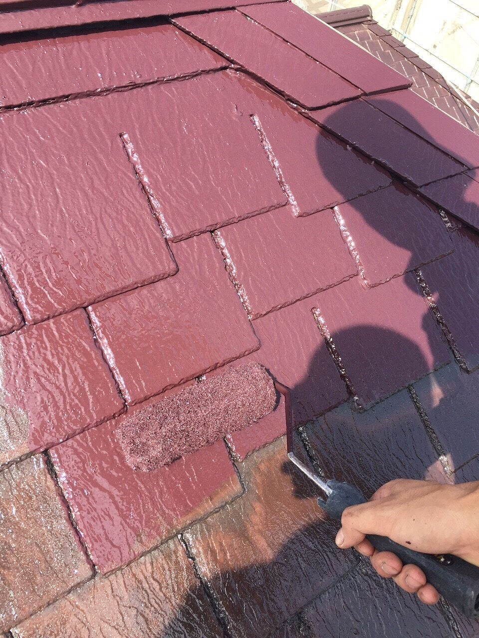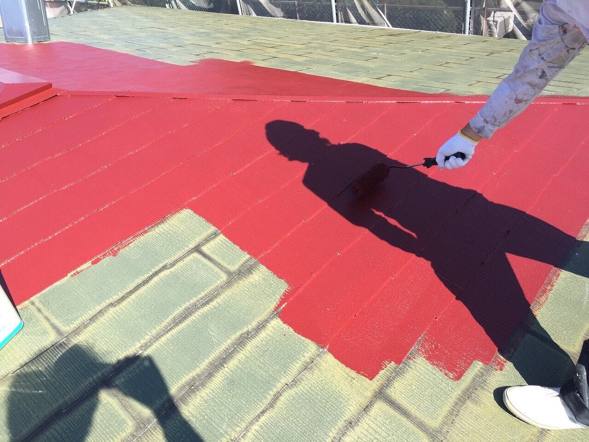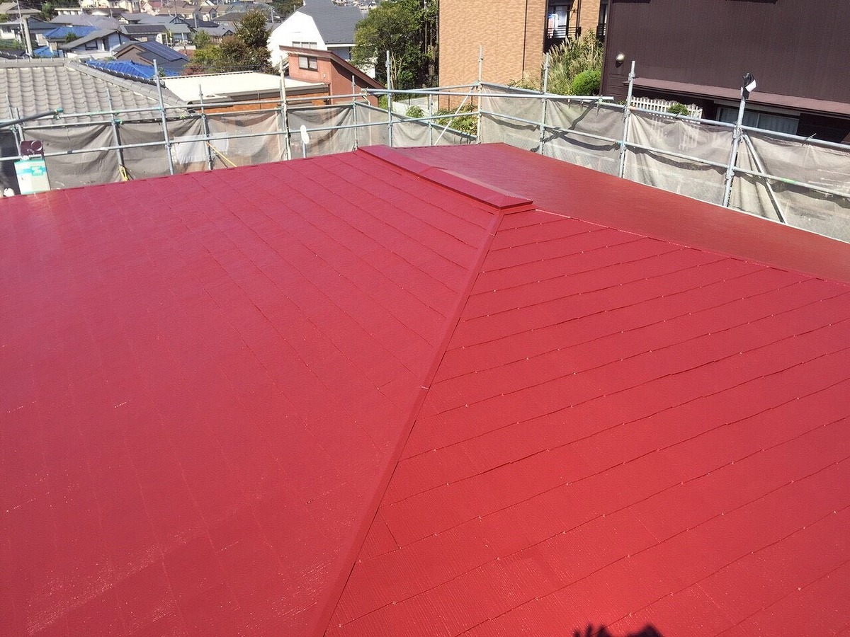 ・屋根塗装 中塗り・上塗り マルーン