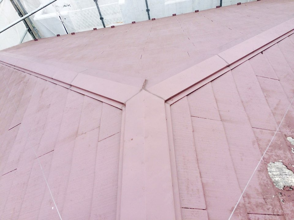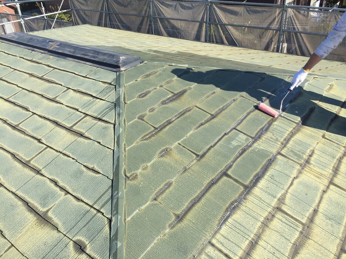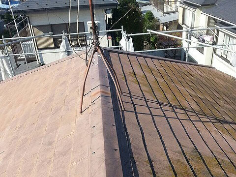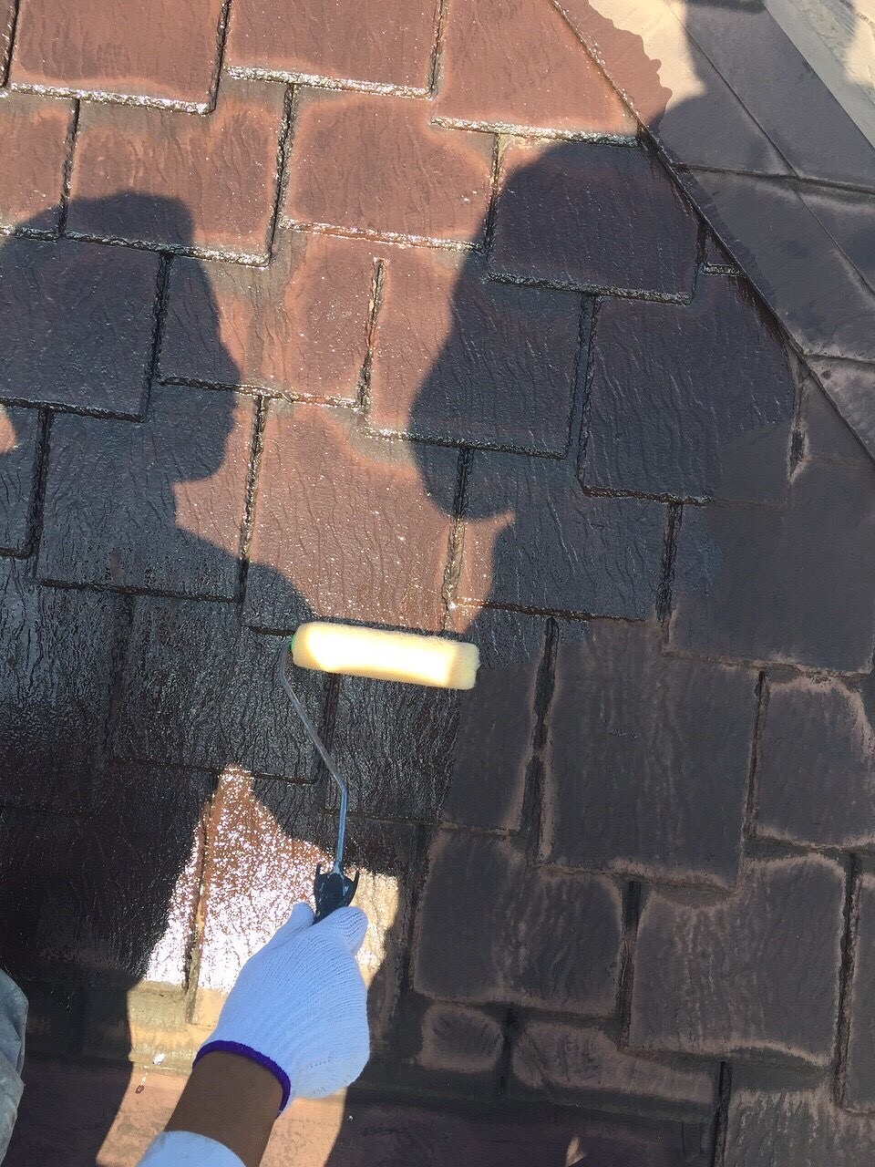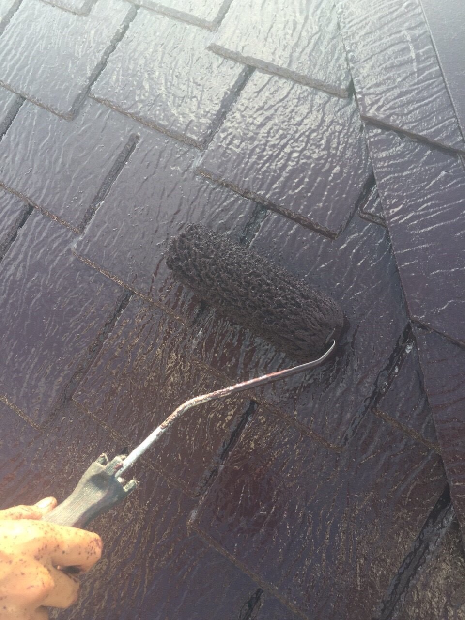 ・屋根塗装 中塗り・上塗り マルーン