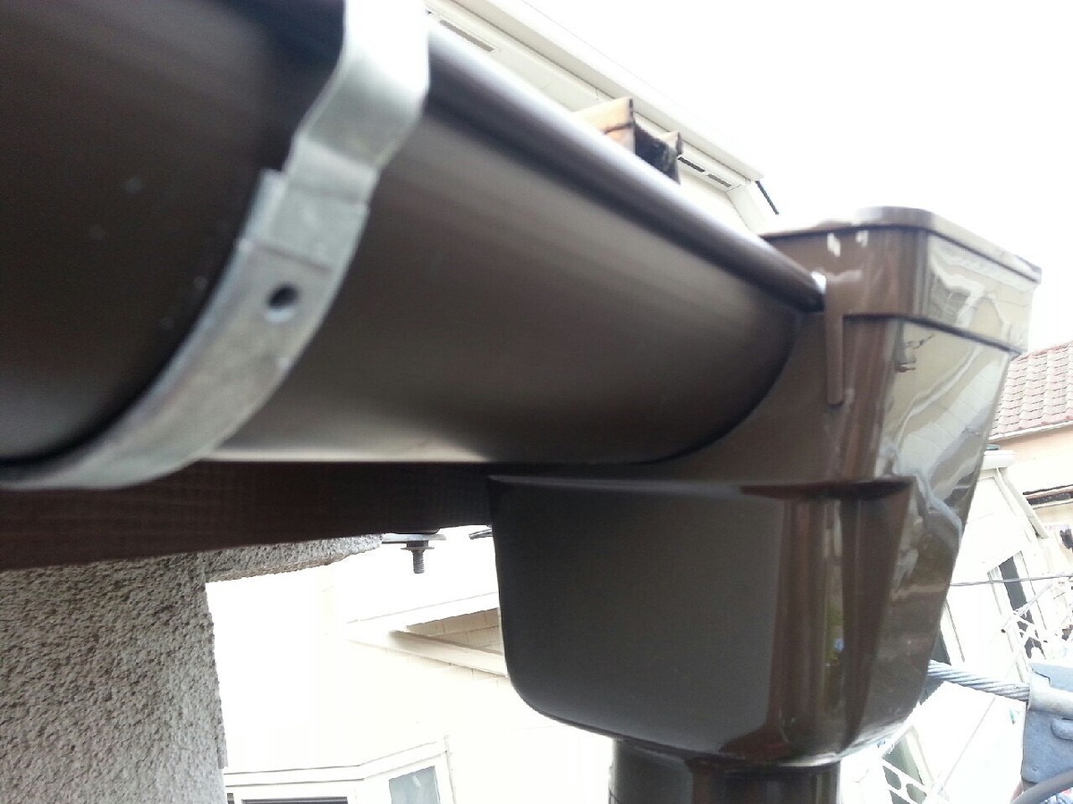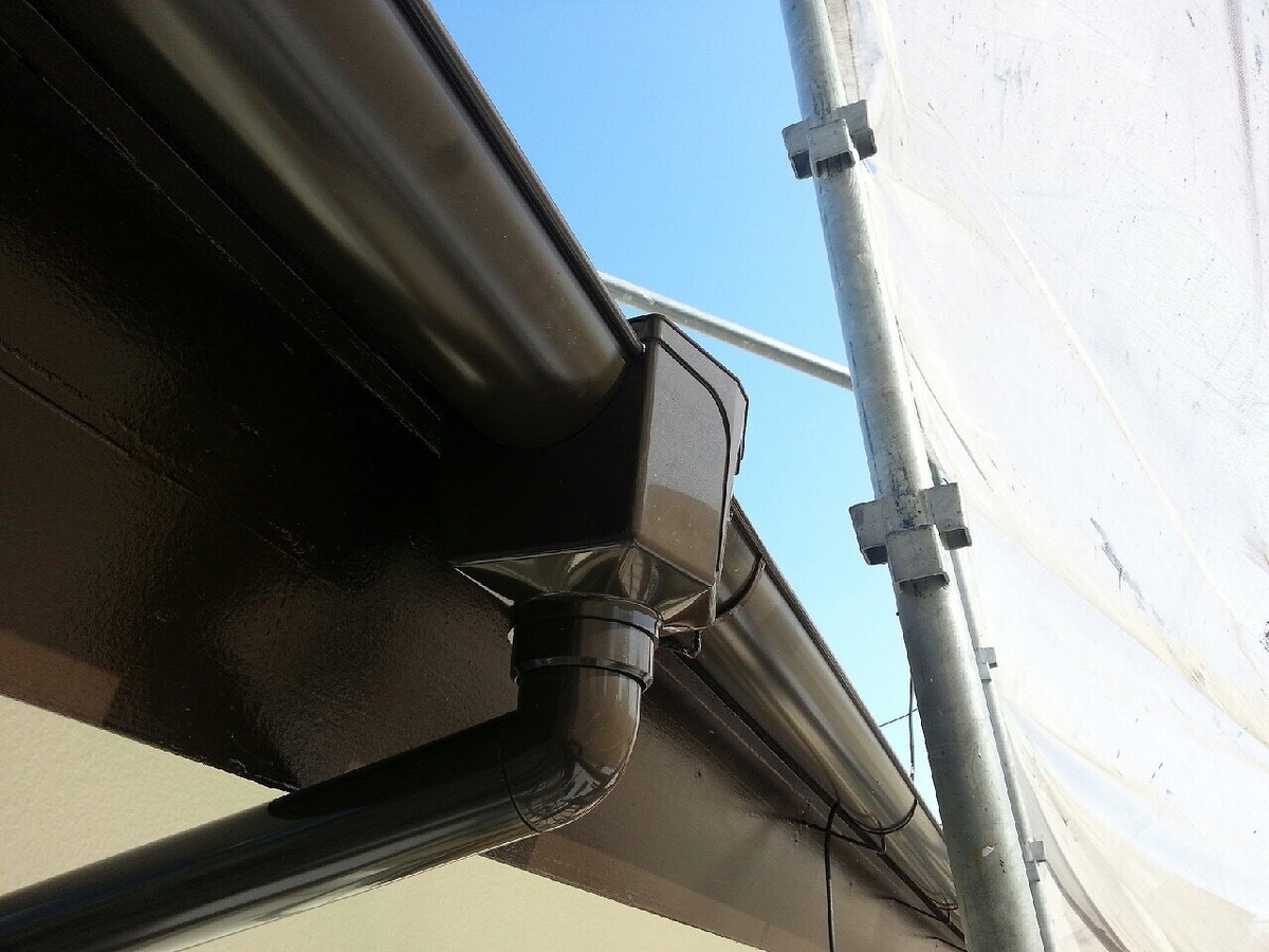 ・雨樋取付け工事 半月 新茶色 竪樋込