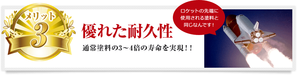 一般の塗料の約3〜4倍の耐久年数を実現しました。